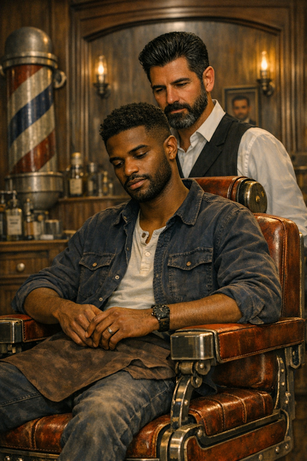 In the exclusive Patreon content, you get to meet Mr Barrett and a selection of his customers. These men know what they want from a hairstyle, and trust Mr Barrett to give them exactly that. Listen to them share intimate details of their love lives as well as some bicurious activities.